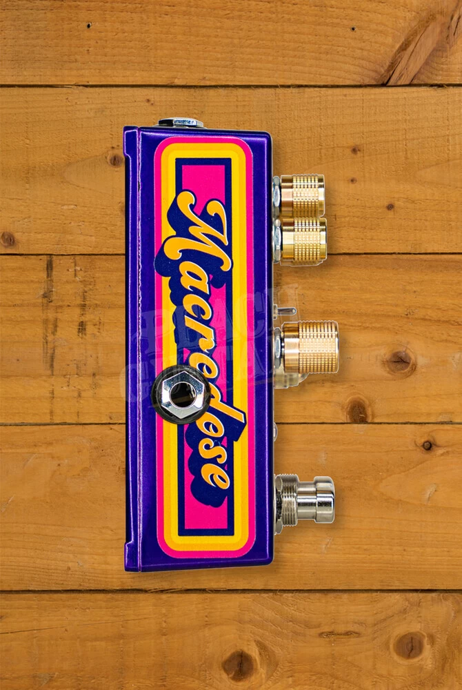 The Macrodose is designed to be expressive and intuitive, offering an EXP input for expression pedal control over different parameters in each mode. It comes with a spare blank backplate for convenient use with hook and loop fasteners. And rest assured, the Macrodose is built to the highest standards in the USA, featuring true bypass switching and powered by a regular 9V DC PSU.
