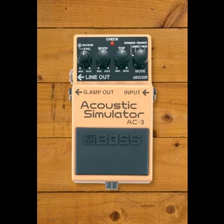 BOSS is pleased to offer another ‘Authentic BOSS’ Compact Pedal; the AC-3. How many times have you been onstage or in the studio with your electric guitar, and wished that you’d brought an acoustic along? For musicians who travel light, hauling an extra guitar to the gig isn’t always the most attractive option. BOSS AC-3 to the rescue! This new-generation compact pedal employs COSM modelling technology to transform any electric guitar into a variety of beautiful acoustic guitars.