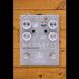 The Caroline Guitar Company Megabyte represents a remarkable evolution of the celebrated Kilobyte pedal, enhancing your sonic toolkit with an array of innovative features. What sets the Megabyte apart is its incorporation of two classic lo-fi digital chips, a nod to the golden age of digital delay. This infusion brings extended delay times into your grasp, allowing for up to 1200ms of beautifully textured delay to shape your sound.