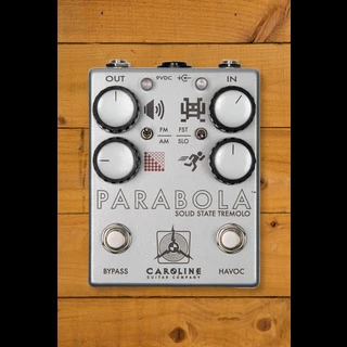 The Parabola doesn’t just stop at the conventional amplitude modulation (AM) you’d expect from a tremolo pedal. It offers an alternative: filtered frequency-based modulation (FM) that adds a touch of subtlety and beauty to your sound, all without intrusively interfering with your playing. And let’s not forget about the Havoc control, which gives you the power to ramp up the speed and depth of the effect. Need an extra kick? Simply press and hold it to infuse your sound with a burst of intensity, then release to seamlessly return to your previous settings. You can even keep the depth at zero and use Havoc for brief, momentary tremolo bursts. The Caroline Guitar Company Parabola is not just a pedal; it’s a dynamic tool to shape and elevate your sound.