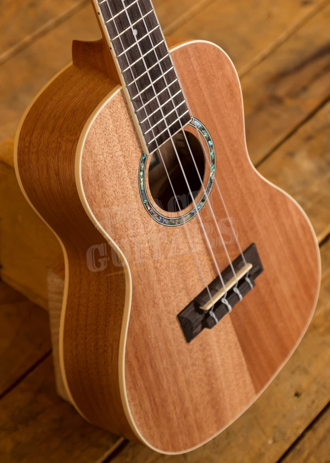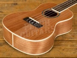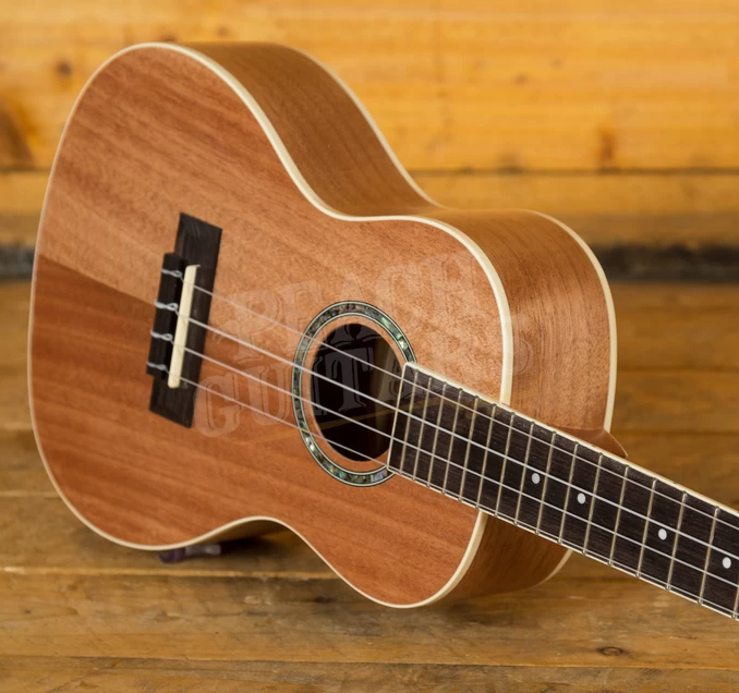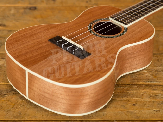 With a handmade all-mahogany construction, it not only looks great but sounds the part too. The satin finish combined with an abalone rosette, cream binding and pearl tuners work together for a gorgeous aesthetic. The instrument is strung with a high-quality set of Aquila strings and will provide an excellent option for someone on a budget or wanting a serious instrument for learning on. Inlaid fret markers are also added to aid navigation of the fingerboard.