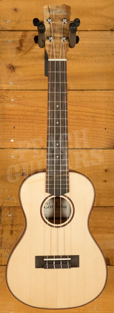 The concert ukulele is extremely popular as it is perhaps the most balanced ukulele. It offers the lovely vocal quality of a smaller soprano, whilst having more bass due to the bigger body. It also has more access on the fingerboard, with the neck joining the body on the 14th fret rather than the 12th. It is still easier to carry and hold whilst standing, due to being smaller than both the tenor and baritone sizes.