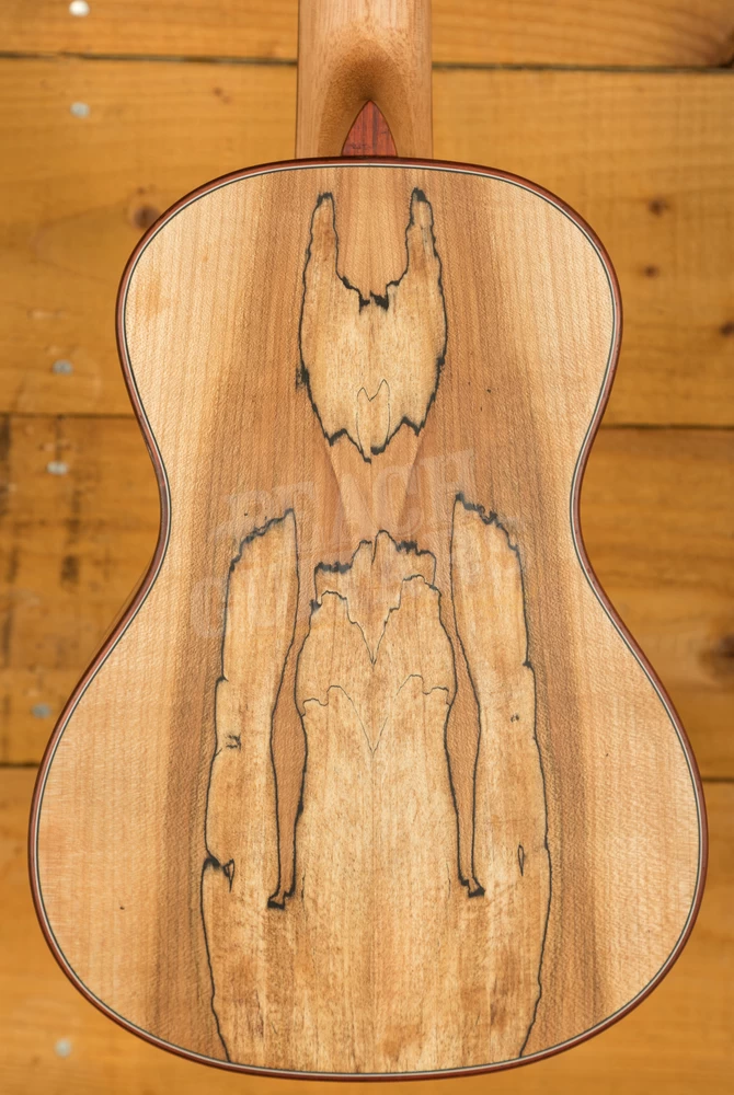 Additional features include a mahogany neck and spalted maple headstock veneer and a satin polyurethane finish. Peach are pleased to also offer this ukulele in soprano (24S), tenor (24T) and tenor with cutaway and electronics (24T-CE) sizes.