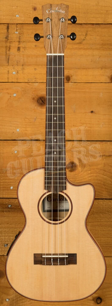 The 24T-CE is a tenor cutaway ukulele that is fitted with a pickup. This means it can be plugged into an amplifier, a PA system or an audio interface, for example. The cutaway offers a modern look and easier access to the higher parts of the fingerboard.