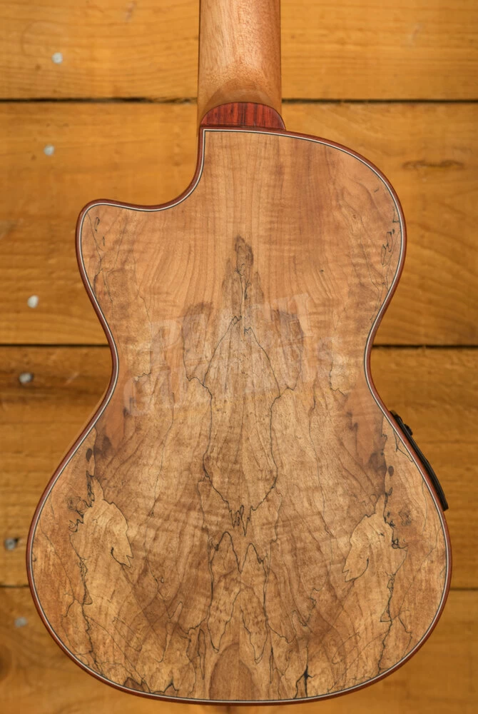Additional features include a mahogany neck and spalted maple headstock veneer and a satin polyurethane finish. Peach are pleased to also offer this ukulele in soprano, (24S), concert (24C) and tenor (24T) sizes.