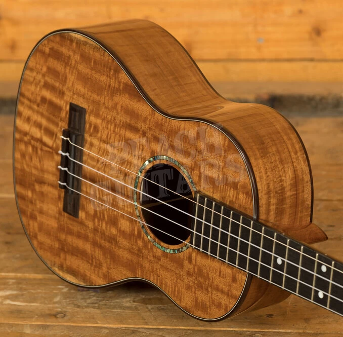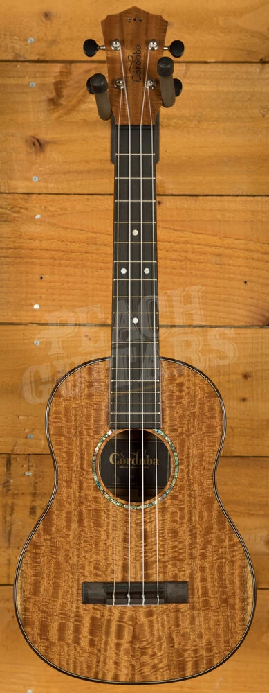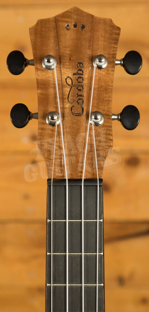 The 35T tenor uke features all-solid acacia for the top, back, and sides which gives it a clear, bright tone, and distinctive figured appearance. The 35T also features a beautiful rosewood bridge, binding, and fingerboard. The styling is refined and sleek, using abalone for the inlaid rosette and rosewood for the binding, capped off with Cordoba’s signature elevated headstock with a figured acacia overlay.
