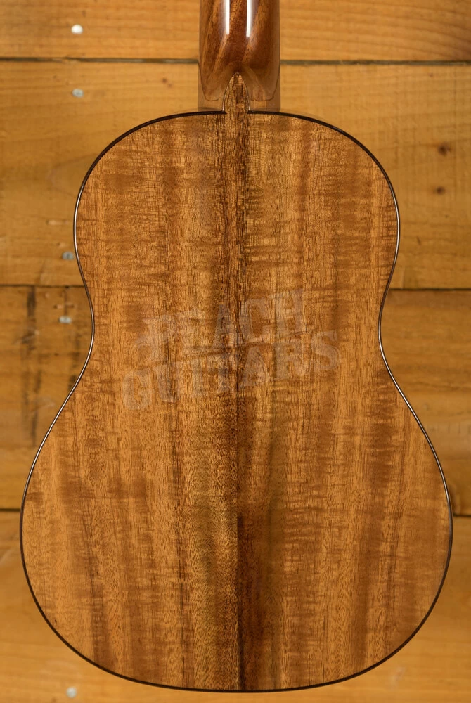 The finish is a gloss polyurethane, applied as thinly as possible for maximum resonance. Other features include a black TUSQ nut and saddle, chrome Grover tuners, and a Cordoba polyfoam case.
