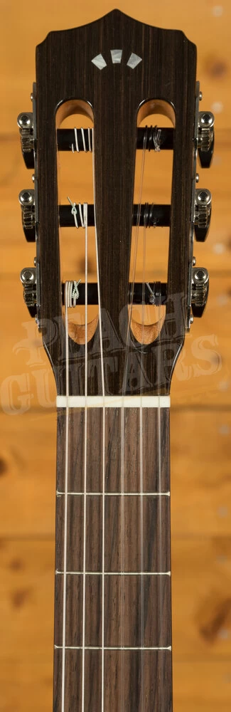 This guitar is an excellent balance between traditional woods combined and modern design. The rosette is a pearl style, the body is bound in and the guitar has a gloss-finish – this all amounts to tremendous value for money. The guitar also includes Fishman’s Sonitone Classical pickup system. Fishman are a leading brand for pickups and preamps for guitars and the Sonitone has discreetly mounted soundhole controls so that a hole does not need to be cut from the side of the guitar.
