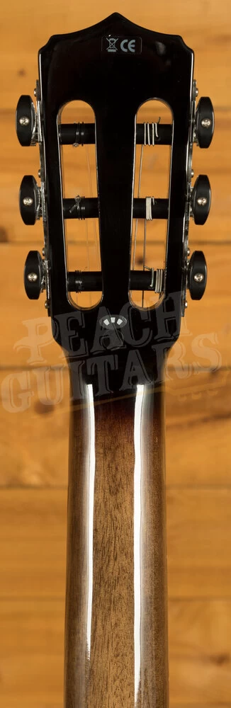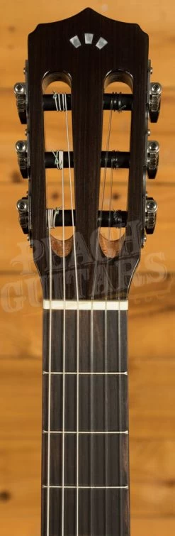 This guitar is an excellent balance between traditional woods combined and modern design. The rosette is a pearl style, the body is bound in and the guitar has a gloss-finish – this all amounts to tremendous value for money. The guitar also includes Fishman’s Sonitone Classical pickup system. Fishman are a leading brand for pickups and preamps for guitars and the Sonitone has discreetly mounted soundhole controls so that a hole does not need to be cut from the side of the guitar.