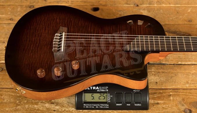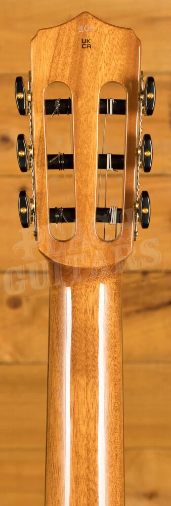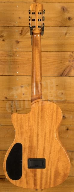 At the heart of this guitar is the revolutionary stage pickup system which has been co-developed with Fishman. This pickup aims to produce Cordoba’s authentic, acoustic nylon-string tone in any and every setting. At our tests here at Peach, we had absolutely zero problem with feedback, even when sitting next to a loud AER amplifier. With a master volume, EQ control and body blend control you can real dial this guitar to taste. Make sure to play around with the blend control, it acts as a level control for the body sensor signal, allowing you to create a really natural sound.