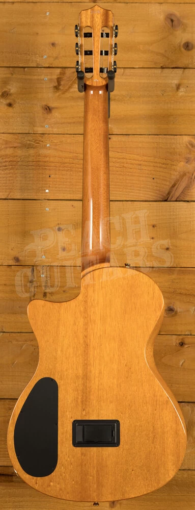 At the heart of this guitar is the revolutionary stage pickup system which has been co-developed with Fishman. This pickup aims to produce Cordoba’s authentic, acoustic nylon-string tone in any and every setting. At our tests here at Peach, we had absolutely zero problem with feedback, even when sitting next to a loud AER amplifier. With a master volume, EQ control and body blend control you can real dial this guitar to taste. Make sure to play around with the blend control, it acts as a level control for the body sensor signal, allowing you to create a really natural sound.