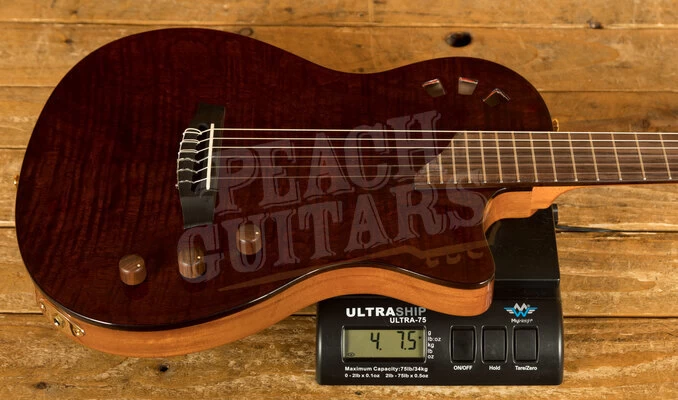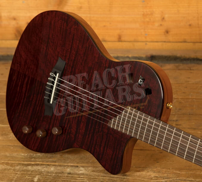 This guitar features a fully chambered mahogany body, allowing for increased resonance and acoustic projection. Thanks to the chambered construction this guitar is super lightweight and feels great to play both standing or sitting. It also includes a stunning flame maple veneer, which has been beautifully stained with a garnet finish.