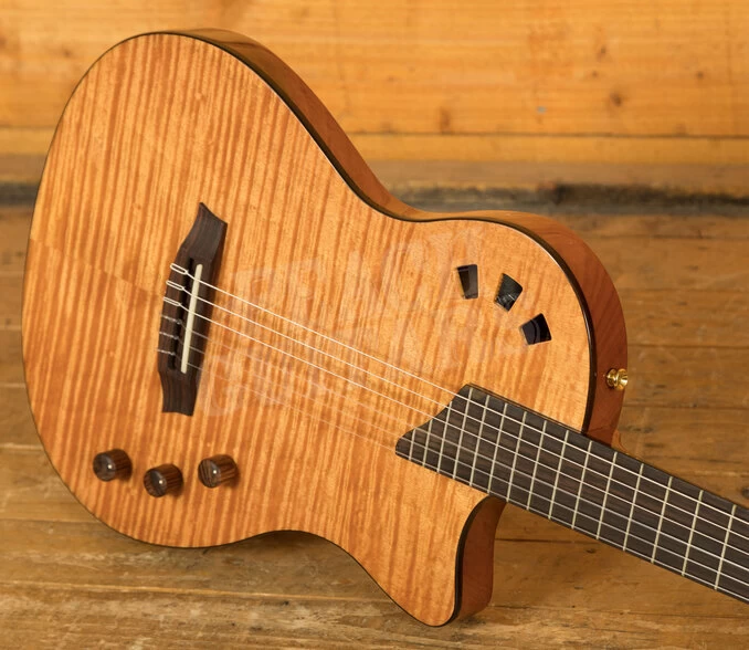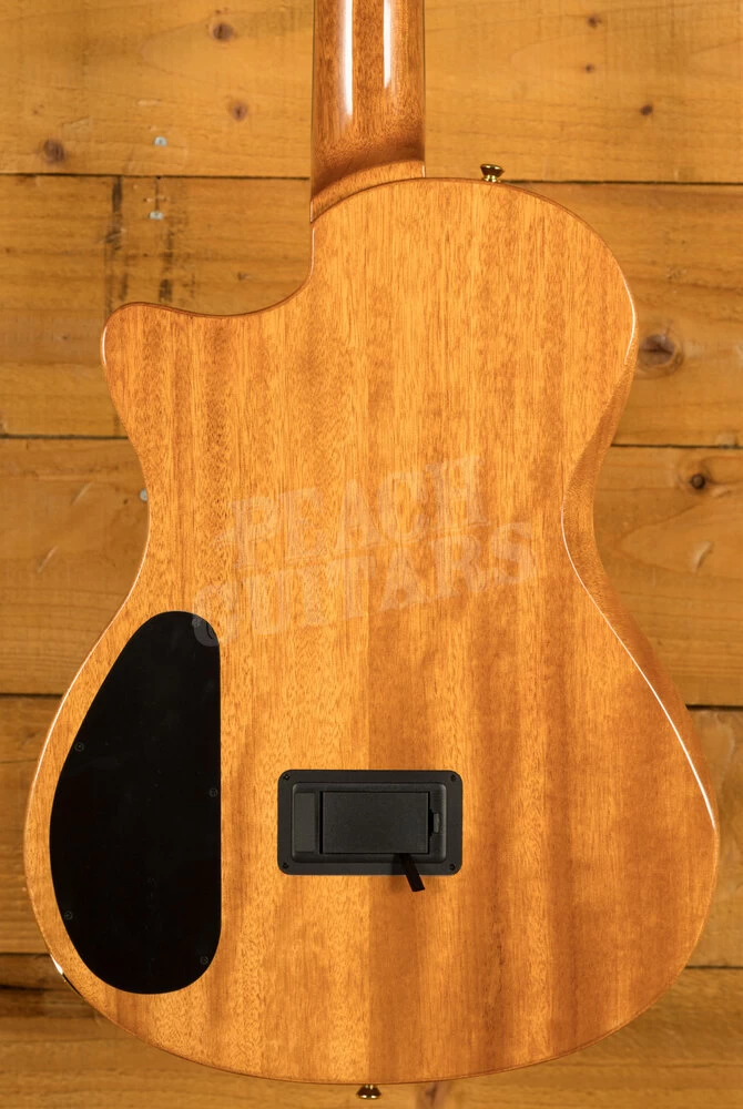 At the heart of this guitar is the revolutionary stage pickup system which has been co-developed with Fishman. This pickup aims to produce Cordoba’s authentic, acoustic nylon-string tone in any and every setting. At our tests here at Peach, we had absolutely zero problem with feedback, even when sitting next to a loud AER amplifier. With a master volume, EQ control and body blend control you can real dial this guitar to taste. Make sure to play around with the blend control, it acts as a level control for the body sensor signal, allowing you to create a really natural sound.