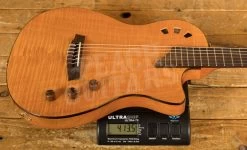 This guitar features a fully chambered mahogany body, allowing for increased resonance and acoustic projection. Thanks to the chambered construction this guitar is super lightweight and feels great to play both standing or sitting. It also includes a stunning flame maple veneer, which has been beautifully stained with a natural amber finish.