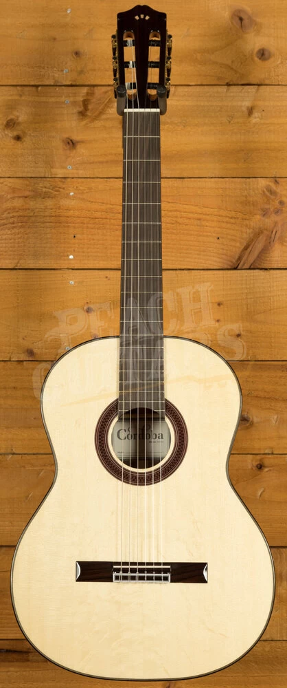 The Cordoba Iberia series allows an affordable entry into the Cordoba world. The C7 is a step up from one of their most popular models, the C5. The C5 is popular with good reason; it is an excellent classical guitar, consistently made and with great tone, looks and playability. In fact, it is such a successful model that they offer it in many different versions. Here at Peach we are proud to stock all of the currently available C5 variations. This C7, which we also stock all the variations of, brings all that was good about the C5 and upgrades it.
