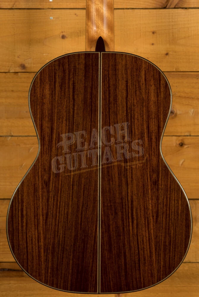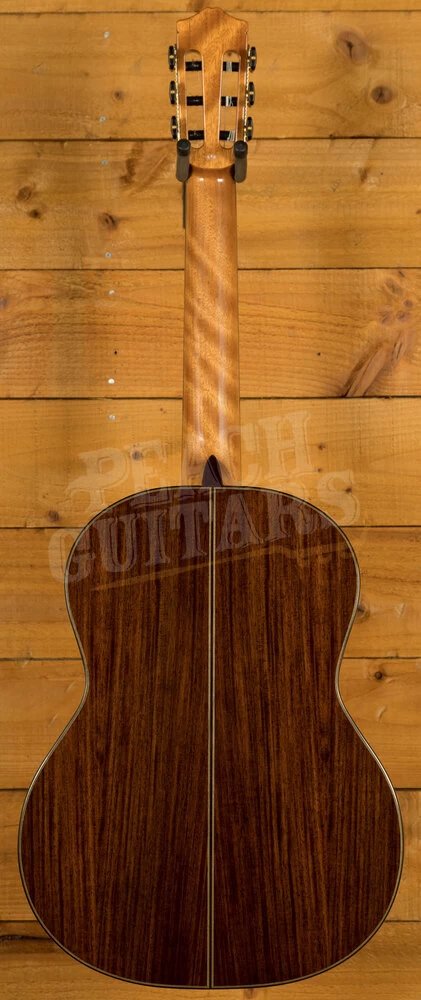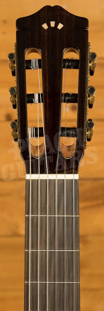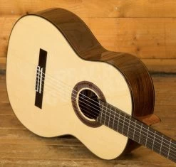 The top of the guitar is made from solid spruce and is complimented with rosewood back and sides. This is a classic choice for nylon-strung guitars and with good reason – it sounds great! The top is fan braced; this style of bracing (pioneered on classical guitars by Antonio de Torres Jurado) gives a far superior bass response and dynamics when compared to a ladder-braced classical.