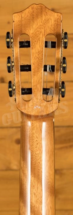 Amazingly for the price point, the guitar is handmade and even the wooden rosette is hand-inlaid. The guitar comes strung with a high quality Savarez set and gold/black tuners complete the elegant look.