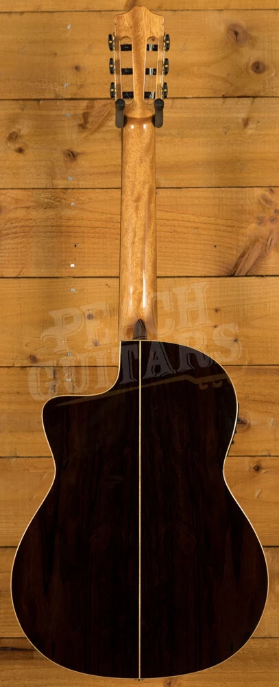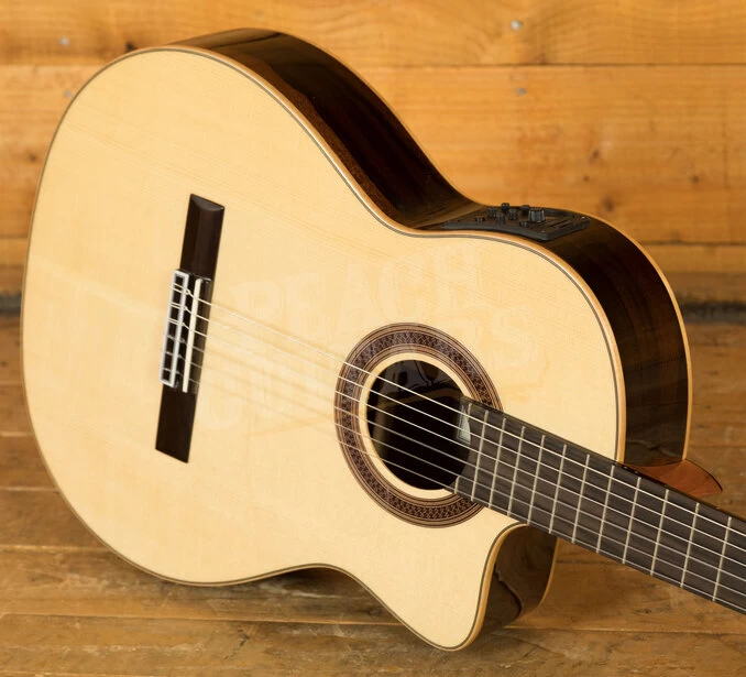 Flamenco guitars tend to have a lower action than classical guitars. The reason for this is classical players will want to play various dynamics without getting any fret buzz from the guitar. Flamenco players on the other hand embrace the buzz as part of the sound and in fact even require it for some techniques. They are usually built with a spruce top (whereas a classical tends to use spruce or cedar) and cypress back and sides – for bright, snappy attack. Cordoba also make a range of ‘negra’ models to compliment the aforementioned ‘blanca’ models. These will feature a different wood choice for the back and sides.