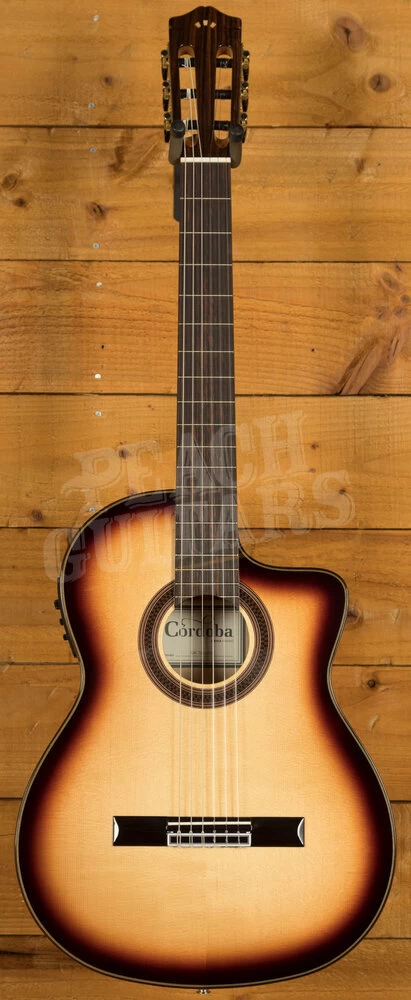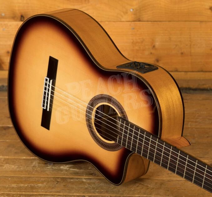 Flamenco guitars tend to have a lower action than classical guitars. The reason for this is classical players will want to play various dynamics without getting any fret buzz from the guitar. Flamenco players on the other hand embrace the buzz as part of the sound and in fact even require it for some techniques. They are usually built with a spruce top (whereas a classical tends to use spruce or cedar) and cypress back and sides – for bright, snappy attack. Cordoba also make a range of ‘negra’ models to compliment the aforementioned ‘blanca’ models. These will feature a different wood choice for the back and sides.