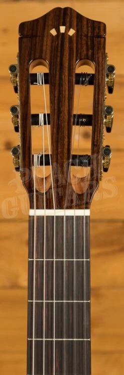 In this instance, the GK Studio Negra goes with the standard spruce top (in this case solid) but with rosewood back and sides. This gives both a beautiful appearance but also a fantastic tone. This will give a bassier tone than the blanca models. The body is a little thinner than a classical guitar (as is the nut width and neck itself) and a clear tap plate is installed on the top (to protect it from the flamenco style). The neck is fitted with a two-way truss rod so that the action can be adjusted over time if needed or desired.