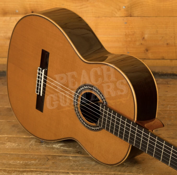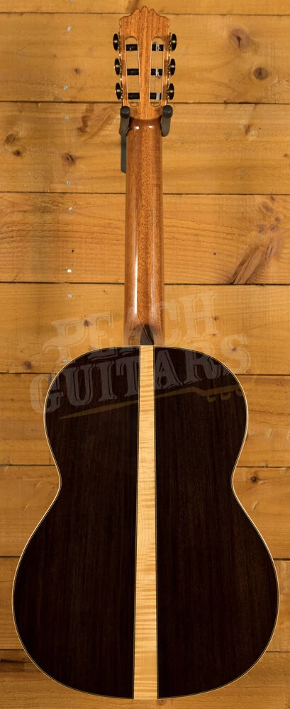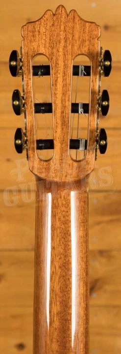 This particular instrument has a nut width of 52mm, a C-shaped neck with a flat fingerboard and 12 frets to the body. Clearly this guitar is designed for the more traditional and experienced classical player and as such makes for an excellent all-solid classical at a great price.