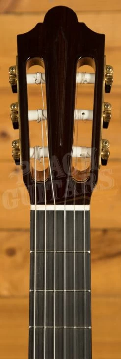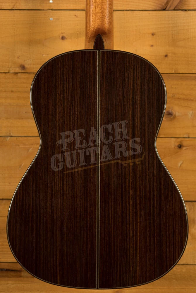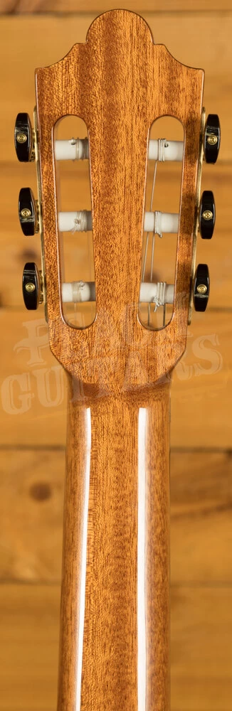 The Friederich is a stunning classical guitar, both to look at and listen to, built with solid cedar for the top and solid rosewood for the back and sides. Modelled with love and care on Daniel Friederich’s highly regarded and influential work, the Cordoba Friederich features his gorgeous carved headstock style. The rosewood chosen for the back and sides is beautifully grained and bound in rosewood also. As we photograph each Friederich that we have in at Peach, you can be sure to see exactly what the particular wood looks like on the guitar that you’re interested in. This is ideal when looking at wood such as rosewood where the look can differ significantly from piece to piece.