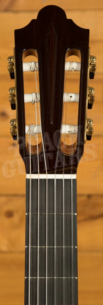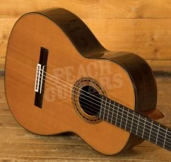 The guitar has fan bracing, a style pioneered on classical guitars by Antonio de Torres Jurado. This gives a far superior bass response and dynamics when compared to a ladder-braced classical. In this case the fan bracing is done in the style of Friederich and features seven fans, all hand-carved from spruce.