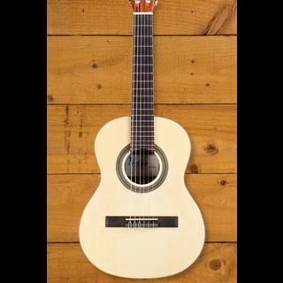 The top of the C1M 1/4 is made from spruce and is complimented with mahogany back and sides. This is a classic choice for nylon-strung guitars and with good reason – it sounds great! The top is fan braced; this style of bracing (pioneered on classical guitars by Antonio de Torres Jurado) gives a far superior bass response and dynamics when compared to a ladder-braced classical.