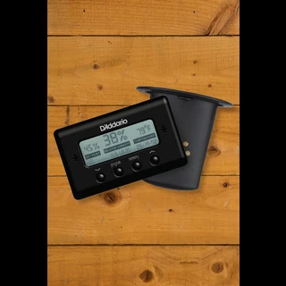 The D’Addario Humidity & Temperature Sensor is a precision-designed hygrometer that digitally indicates accurate relative humidity levels ranging from low (under 20%) to 99%. Temperature is displayed in either Fahrenheit or Centigrade, ranging from -32F to 122F (-35C to 50C). The HTS includes a programmable set point, as well as a memory feature that indicates date/time of the highest & lowest temperature/humidity levels the instrument has been exposed to. An essential tool to monitor your instrument’s environment.