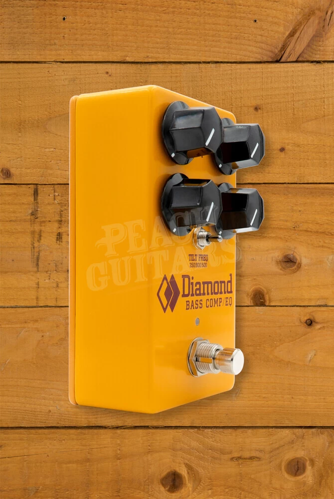 The Diamond Pedals BASS COMP/EQ is a true legend of a pedal, one that every bass player needs on their board. Finding the compression sweet-spot on bass is truly magical, and this next-gen compressor maintains the classic circuit architecture while increasing range and functionality. With a new EQ section and tilt switch to select the fulcrum frequency of the Tilt EQ, you can sculpt your tone in the same box that squashes it. The BASS COMP/EQ also features a naturally smooth optical compression from a custom US-made Opto-Isolator, 10dB Mid boost and cut, and top-mounted jacks and soft touch relay switching. Hand-made in Montreal, Canada, the pedal is equipped with Burr Brown Integrated circuits and can be powered by a regular 9-18 V DC PSU. The Diamond BASS COMP/EQ is the best version of the Diamond Compressor yet and is a mastering solution for your effects chain, one you might never turn off.