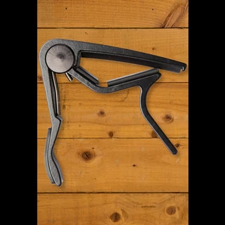 The Dunlop Trigger Capo allows you to quickly and easily change key with a squeeze of the hand. This capo’s strong spring-action clamp keeps it firmly in place, while its slim profile ensures that you can play up and down the fingerboard unhindered. Special padding protects your instrument’s neck from scratches. Made from lightweight aircraft-grade aluminium, the Trigger Capo is a must on the road when you need to change key on the fly.