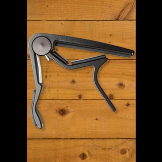 The Dunlop Trigger Capo allows you to quickly and easily change key with a squeeze of the hand. This capo’s strong spring-action clamp keeps it firmly in place, while its slim profile ensures that you can play up and down the fingerboard unhindered. Special padding protects your instrument’s neck from scratches. Made from lightweight aircraft-grade aluminium, the Trigger Capo is a must on the road when you need to change key on the fly.