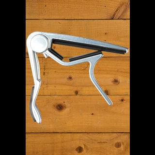 The Dunlop Trigger Capo allows you to quickly and easily change key with a squeeze of the hand. This capo’s strong spring-action clamp keeps it firmly in place, while its slim profile ensures that you can play up and down the fingerboard unhindered. Special padding protects your instrument’s neck from scratches. Made from lightweight aircraft-grade aluminium, the Trigger Capo is a must on the road when you need to change key on the fly.