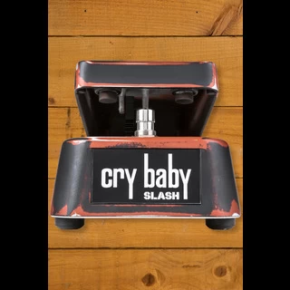 Throughout his career, Slash has used the Cry Baby to create his trademark epic solos that he weaves into his groundbreaking gritty, blues-influenced rock. Dunlop worked closely with him to design the Slash Cry Baby Classic, custom-voiced for the raw, expressive sound that influenced a generation of guitar players. Tuned to a lower frequency and featuring a custom-wound resonance inductor, this wah has a huge dynamic range and a wide sweep. Two side-mounted blue LEDs indicate ON/OFF status, viewable from any angle onstage, so you can always tell when the effect is on. The Slash Cry Baby Classic also features high quality components, such as a true hardwire bypass switch and a long-life pot, and comes in housed in a heavy duty die-cast casing featuring custom Slash artwork and a distressed hot-rod paintjob.