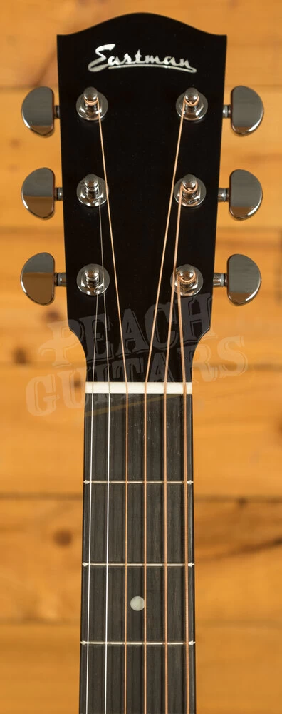 Not only does the Eastman AC122-1CE excel in craftsmanship and tonal quality, but it also offers practical features. The dual-acting truss rod allows for precise adjustments to suit your playing style and preferences. The tortoise binding on the top and back adds a beautiful aesthetic touch to the guitar’s overall design. The pearl headstock logo and pearl dot inlays exude a sense of sophistication. The white side dot markers enhance visibility on the fingerboard, especially in low-light settings.