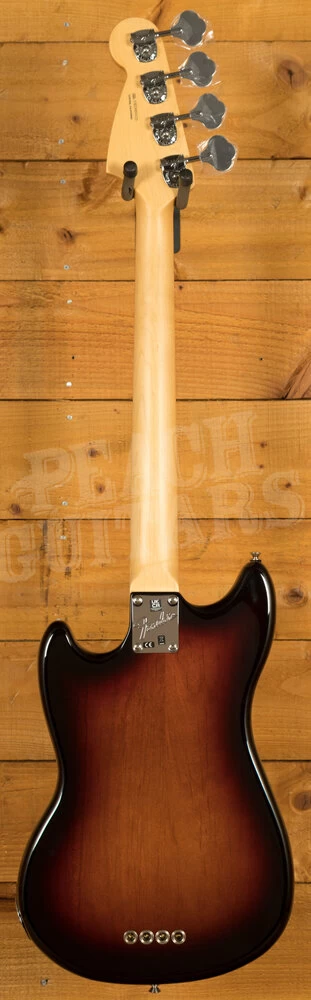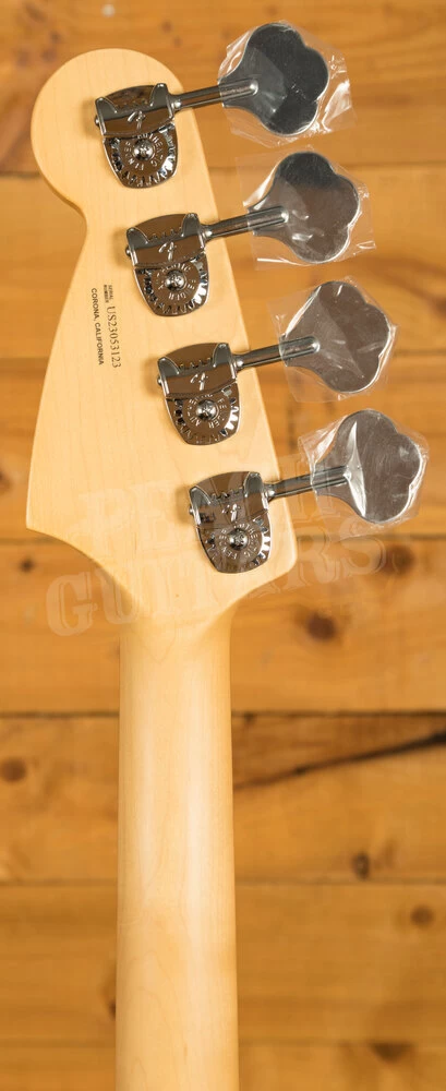 The neck of the American Performer Mustang Bass, with its “Modern C”-shaped profile, boasts a comfortable 9.5″-radius fingerboard, adorned with 19 medium-jumbo frets. This combination invites effortless bending and caters to diverse playing styles.