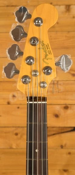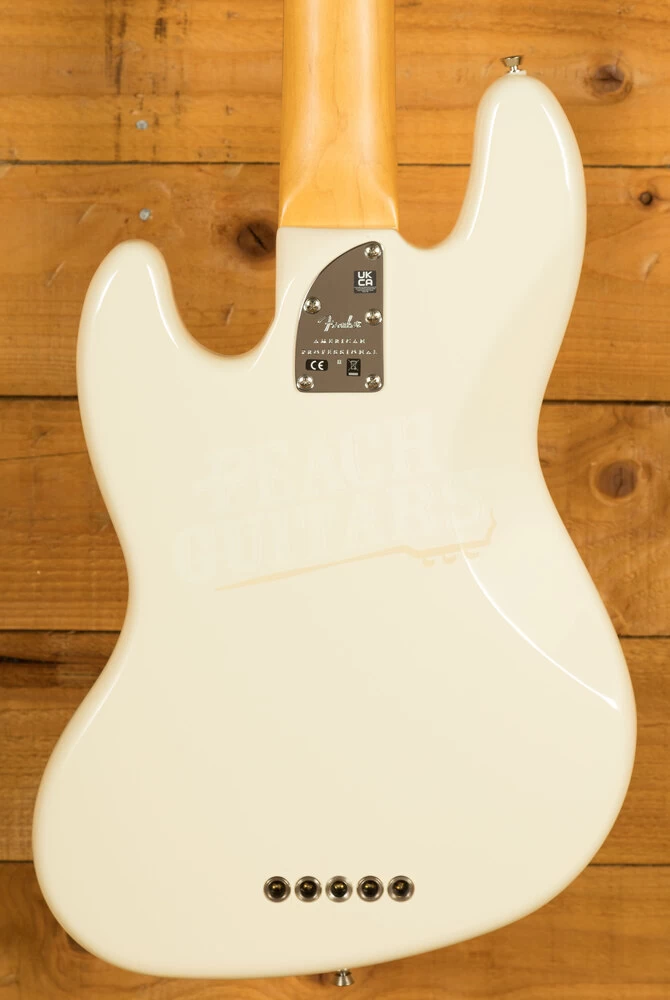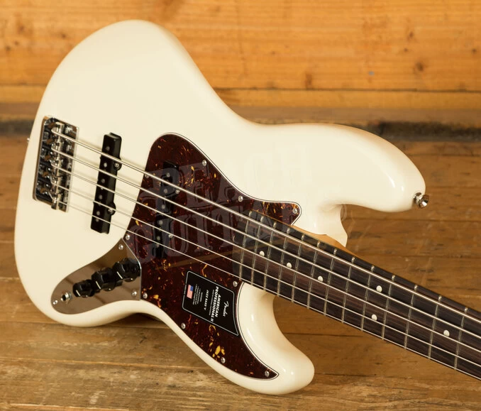 The Alder body is typically comfortable, as all Jazz Bass’s are, finished in the brilliant Olympic White colour option, it looks real slick. The Maple neck with a Rosewood fingerboard feature a slim “C” profile, designed for speed and comfort; This bass is super easy to navigate, allowing for great access to the upper register. 20 frets, a 9.5″ radius and 34″ scale length make this Jazz Bass feel familiar and supremely comfortable. The Professional II range brings a new contoured neck heel , soft rolled fingerboard edges and a super natural finish for improved feel and comfort