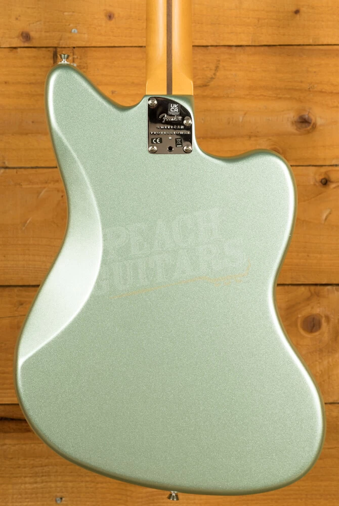 The Alder body is typically comfortable, as all Jazzmaster’s are, finished in the brilliant Mystic Surf Green option, it looks real slick. The Maple neck and fingerboard feature a Deep C profile, designed for speed and comfort; it’s equally at home playing big chords or intricate lead work. 22 frets, a 9.5″ radius and 25.5″ scale length make this Jazzmaster feel familiar and supremely comfortable. The Professional II range brings a new contoured neck heel , soft rolled fingerboard edges and a super natural finish for improved feel and comfort