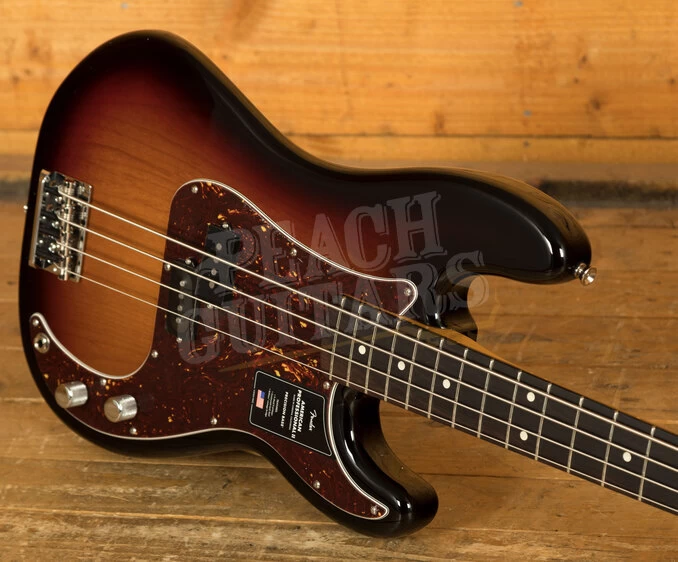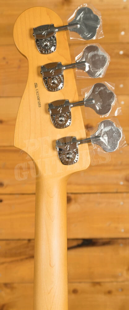The Alder body is typically comfortable, as all Precision Bass’s are, finished in the brilliant 3 Colour Sunburst option, it looks real slick. The Maple neck with a Rosewood fingerboard feature a ’63 profile, designed for speed and comfort; This bass is super easy to navigate, allowing for great access to the upper register. 20 frets, a 9.5″ radius and 34″ scale length make this Precision Bass feel familiar and supremely comfortable. The Professional II range brings a new contoured neck heel , soft rolled fingerboard edges and a super natural finish for improved feel and comfort