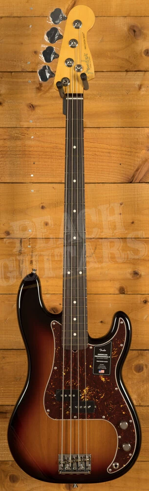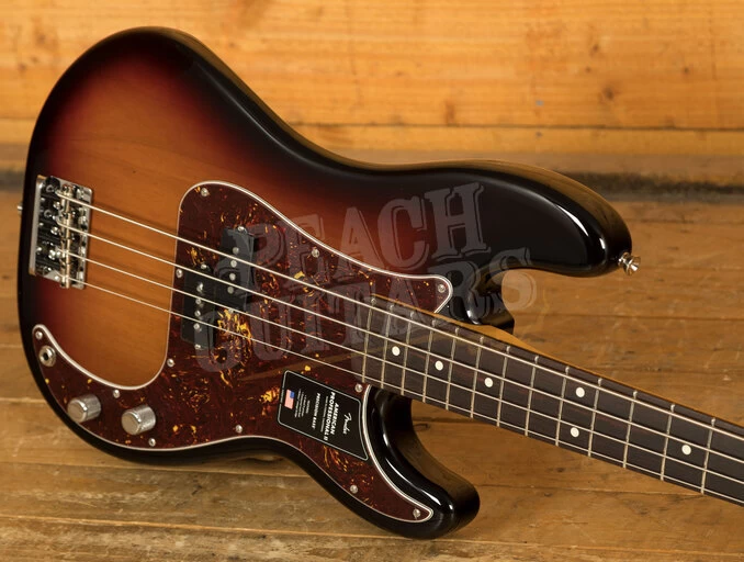 The Alder body is typically comfortable, as all Precision Bass’s are, finished in the brilliant 3 Colour Sunburst option, it looks real slick. The Maple neck with a Rosewood fingerboard feature a ’63 profile, designed for speed and comfort; This bass is super easy to navigate, allowing for great access to the upper register. 20 frets, a 9.5″ radius and 34″ scale length make this Precision Bass feel familiar and supremely comfortable. The Professional II range brings a new contoured neck heel , soft rolled fingerboard edges and a super natural finish for improved feel and comfort