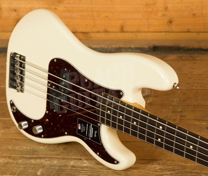 The Alder body is typically comfortable, as all Precision Bass’s are, finished in the brilliant Olympic White option, it looks real slick. The Maple neck with a Rosewood fingerboard feature a ’63 profile, designed for speed and comfort; This bass is super easy to navigate, allowing for great access to the upper register. 20 frets, a 9.5″ radius and 34″ scale length make this Precision Bass feel familiar and supremely comfortable. The Professional II range brings a new contoured neck heel , soft rolled fingerboard edges and a super natural finish for improved feel and comfort