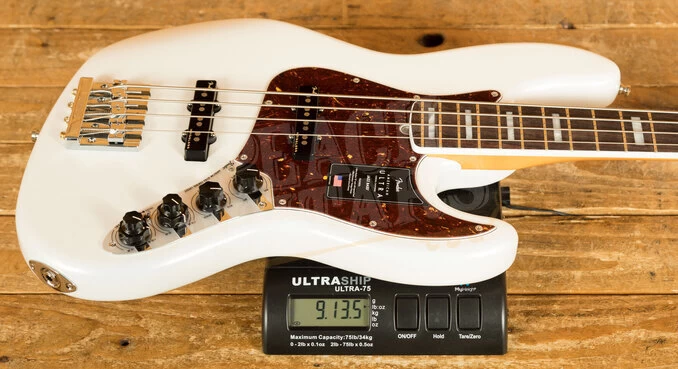 The Fender Jazz Bass is one of the most popular bass guitars ever put into production, with its timeless design and incredible versatility; it has been a staple in the roster for over 60 years. The Ultra Jazz Bass benefits from an Alder body, typically well balanced and comfortable, as all Jazz’s are, and with a cool Arctic Pearl finish it looks real slick.