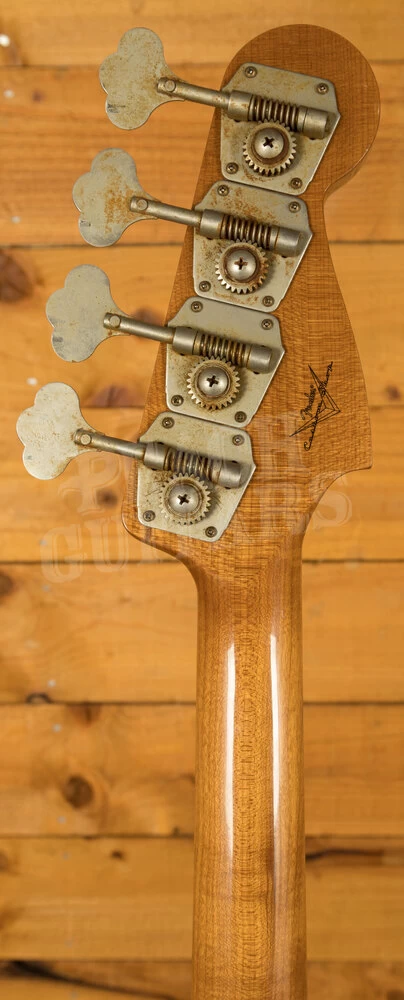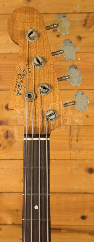 Loaded with a Hand wound ’62 Precision Bass pickup, you get period correct Fender tone, thereΒs just no mistaking that signature Fender bass thump! it really does give off the vintage vibe. Vintage machine heads and a 4-Saddle Vintage relic bridge deliver ultimate tuning stability and intonation.
