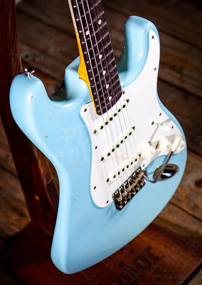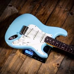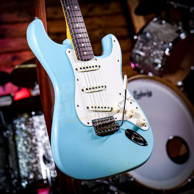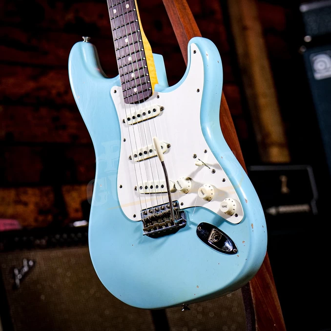The sort for lightweight Alder body is finished in an authentically aged Daphne Blue lacquer, itÂ’s a real winner! This finish will wear beautifully with time and develop its own character even further, it also allows the natural resonance of the body to sing and sustain much more effectively.