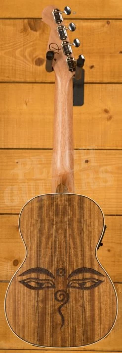 This Dhani Harrison Ukulele is available in the super awesome Sapphire Blue. It has super unique and custom fretboard inlays and engraved designs on the back of the instrument that hold personal significance to the Harrison. Featuring a solid Ovangkol top and back and sides with a custom 3/4 body depth, this tenor sized Ukulele is perfect for all players. The inclusion od the upgraded Fender electronics make this beauty the real deal. This new Dhani Harrison Ukulele will challenge you to expand your musical horizons