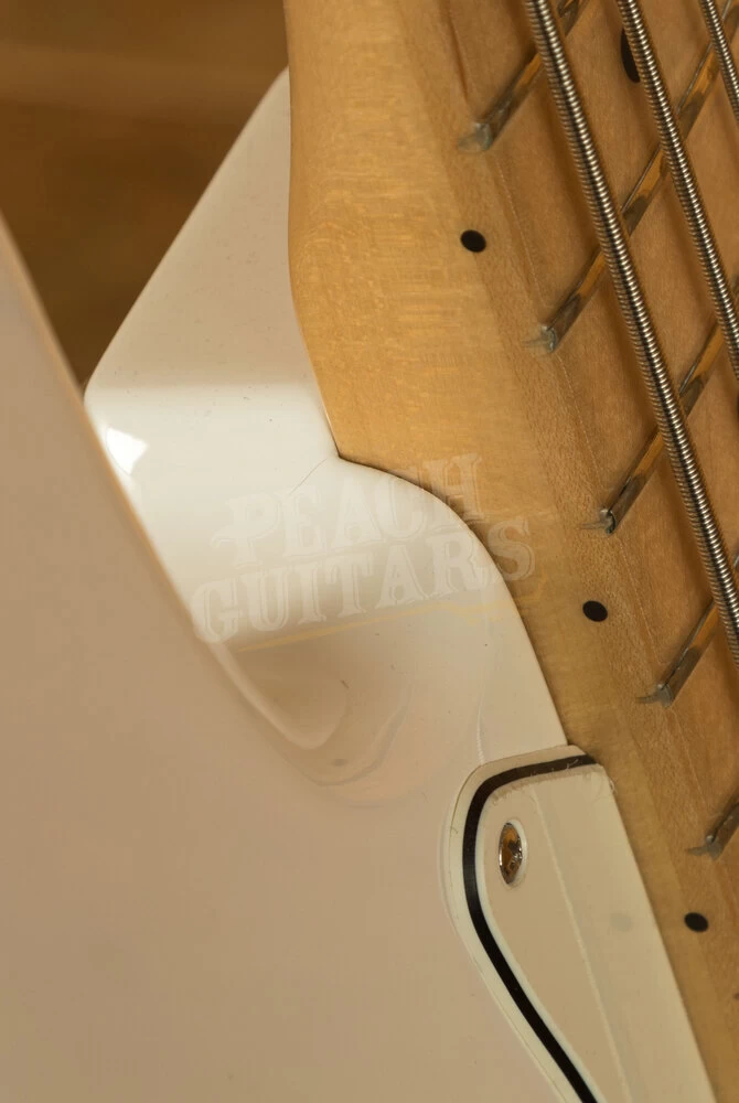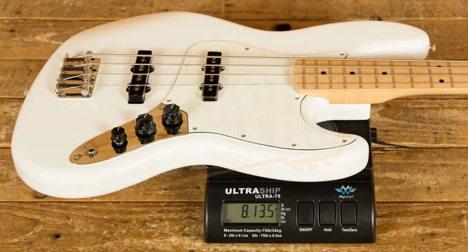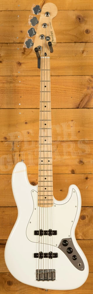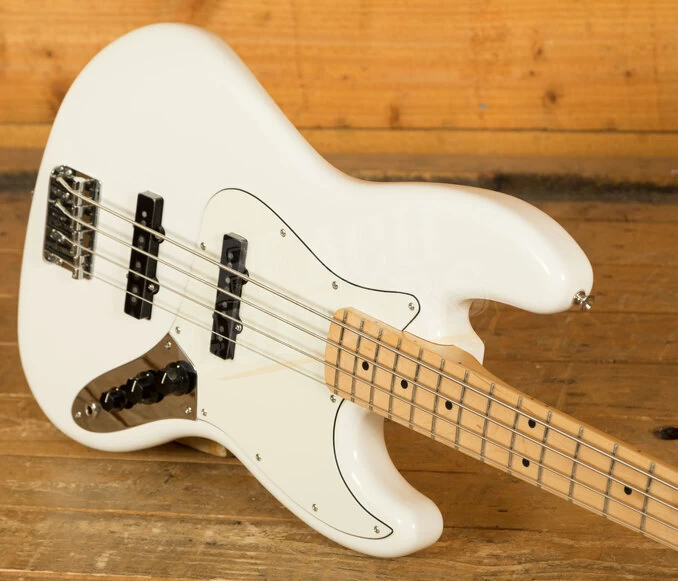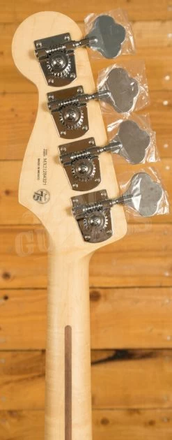 The Alder body is typically comfortable thanks to the lush sweeping curves, and with a crisp Polar White finish it looks real slick. The Maple neck features a modern C profile, designed for precision and comfort; it’s equally at home playing big low end root notes or technical work further up the neck. 20 medium jumbo frets and a 9.5″ radius make the Player Series Jazz feel familiar and supremely comfortable.