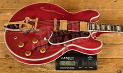 A pair of Gibson Custombucker Alnico 3 humbuckers delivers those classic PAF tones, deep, rich and resonant they offer great clarity. According to Gibson these are some of the most historically accurate PAF clones on the market, with an ultra-rich harmonic quality; it’s as close as you can get to the classic 355 tone. With nickel hardware across the board and a ABR-1 Bridge and Bigsby Tremolo, you can look as good as you sound!