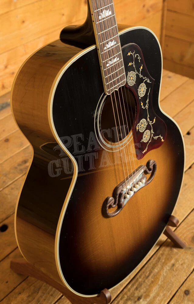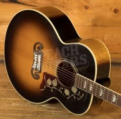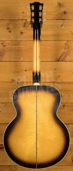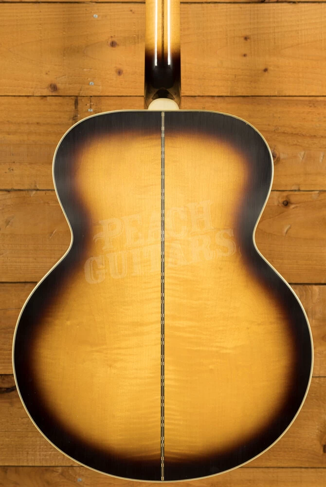 With a thermally aged Sitka Spruce top paired up with some truly stunning hand picked figured maple this SJ-200 boasts a bold, lively tone with loads of power. This guitar really comes alive when you dig in hard! With a period correct aged Vintage Sunburst this SJ-200 really does look the real deal, the lacquer cracking and attention to detail is truly second to none!