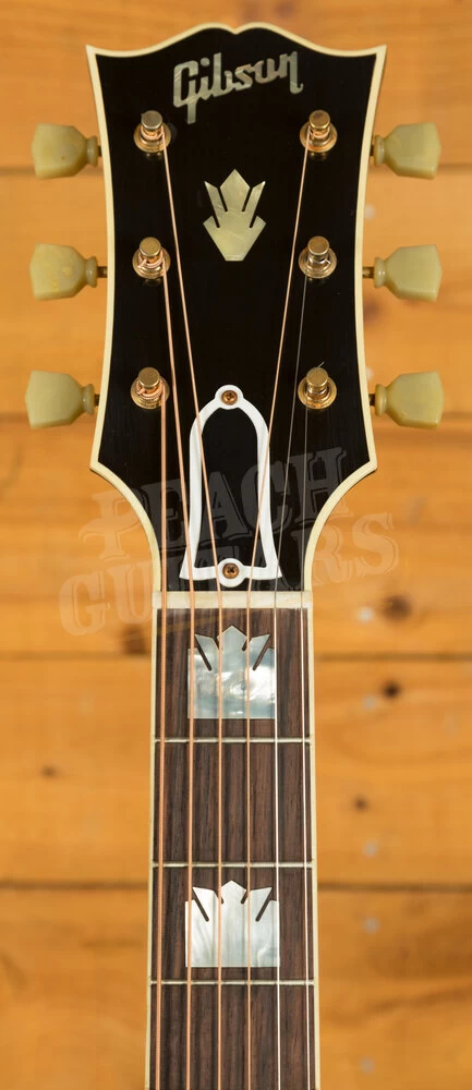 This 1957 SJ-200 features a rounded Maple neck which feels great underhand, allowing for quick and easy movements right across the neck. The Rosewood fingerboard is adorned with traditional Moth of Pearl Graduated Crown inlays and 20 vintage frets.It’s comfortable, poised and ready to play.