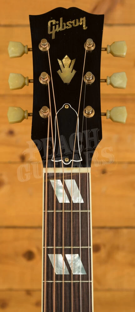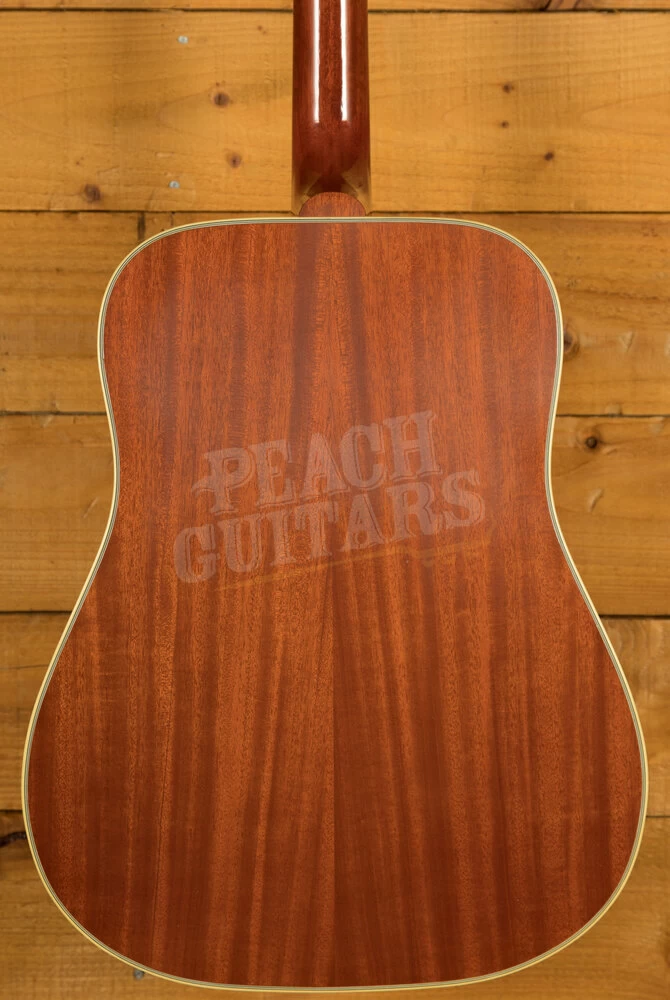 The Gibson Hummingbird is probably one of the most iconic acoustic guitars ever produced, with its rich tone and versatile nature it’s a real players favourite. This Murphy Lab Hummingbird pays homage to the 1960Βs edition of this legendary instrument. The larger Dreadnought body is beautifully crafted from super resonant Mahogany and boasts a thermally aged Sitka Spruce top. The aged Heritage Cherry finish is super vibrant and really does look the real deal, it perfectly complements what is possibly the most unique pickguard around!